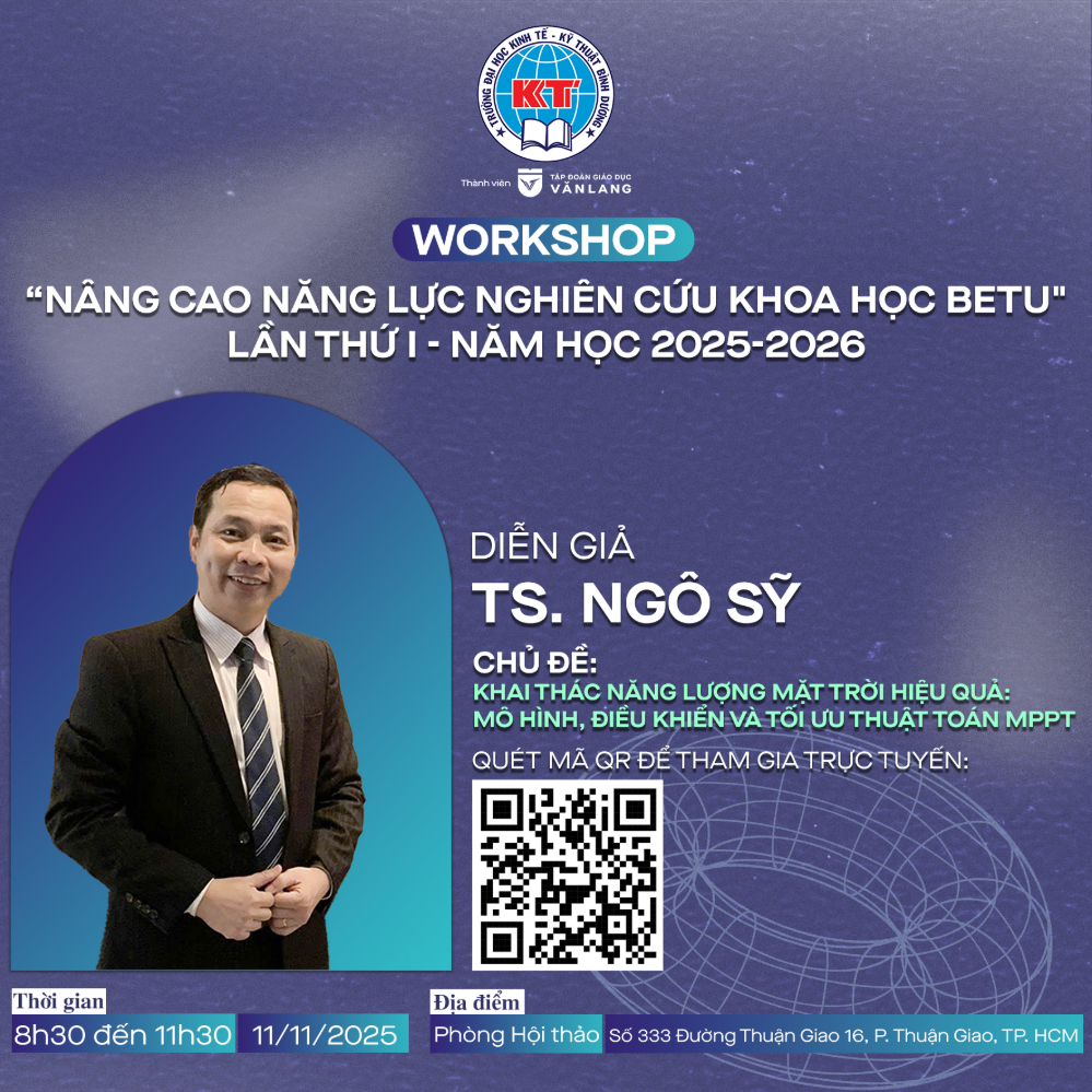 Hội thảo NCKH sinh viên khối ngành Kinh tế năm 2025 Sáng ngày 31-5-2025, khoa Quản trị phối hợp cùng khoa Kế toán,Tài chính – Ngân hàng, Trường Đại học Kinh tế - Kỹ thuật Bình Dương (BETU) tổ chức Hội thảo Nghiên cứu khoa học sinh viên khối ngành Kinh tế năm 2025, có sự tham gia của đông đảo giảng viên, cán bộ, sinh viên khối ngành Kinh tế, tạo nên không gian học thuật sôi nổi, giàu tính thực tiễn và chuyên môn.
