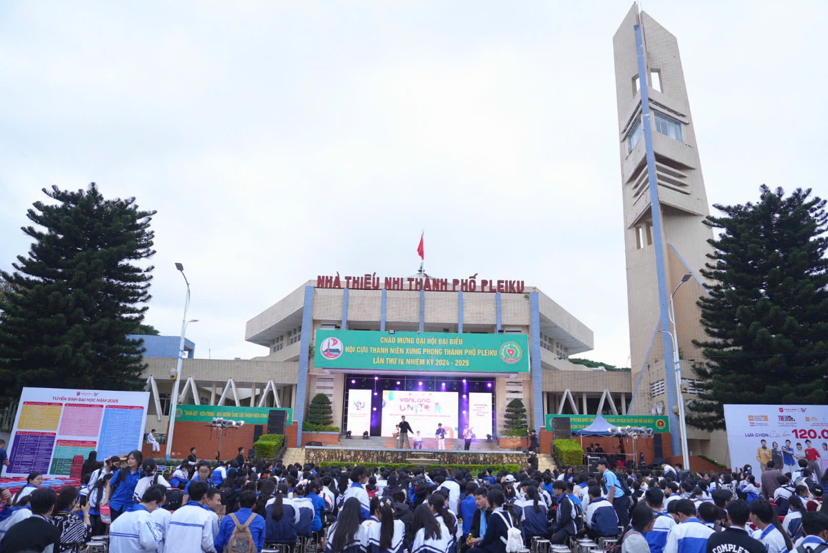 Không khí sự kiện càng thêm náo nhiệt với những tiết mục văn nghệ đặc sắc và trò chơi tương tác hấp dẫn, giúp học sinh Gia Lai vừa học, vừa chơi trong một không gian trẻ trung, năng động.