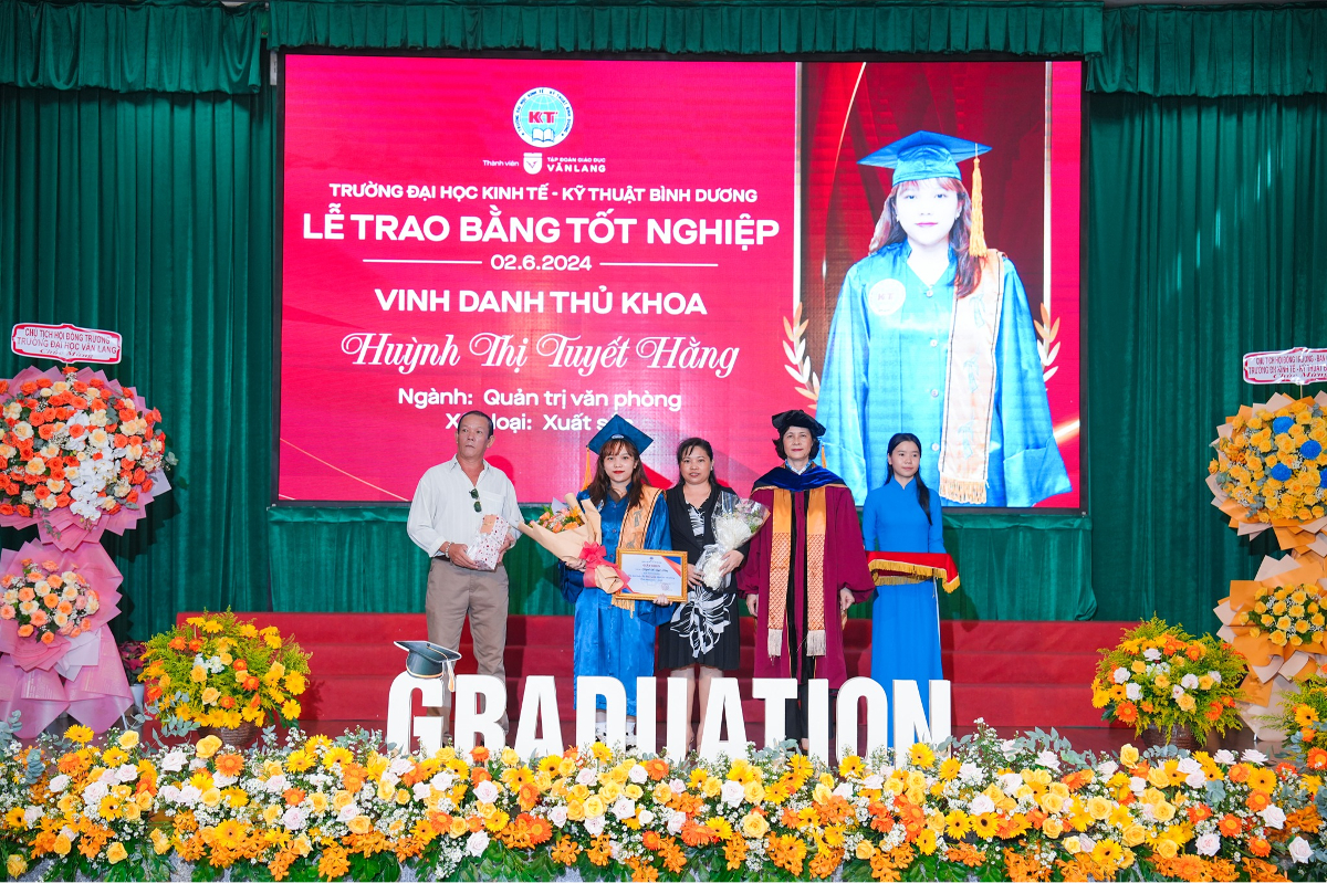 Sáng 2-6-2024, Trường Đại học Kinh tế - Kỹ thuật Bình Dương (BETU) đã long trọng tổ chức Lễ trao bằng tốt nghiệp cho 209 tân cử nhân, tân dược sĩ (đợt xét tốt nghiệp tháng 4-2024). Theo đó, có 51 sinh viên tốt nghiệp đạt loại xuất sắc và giỏi.